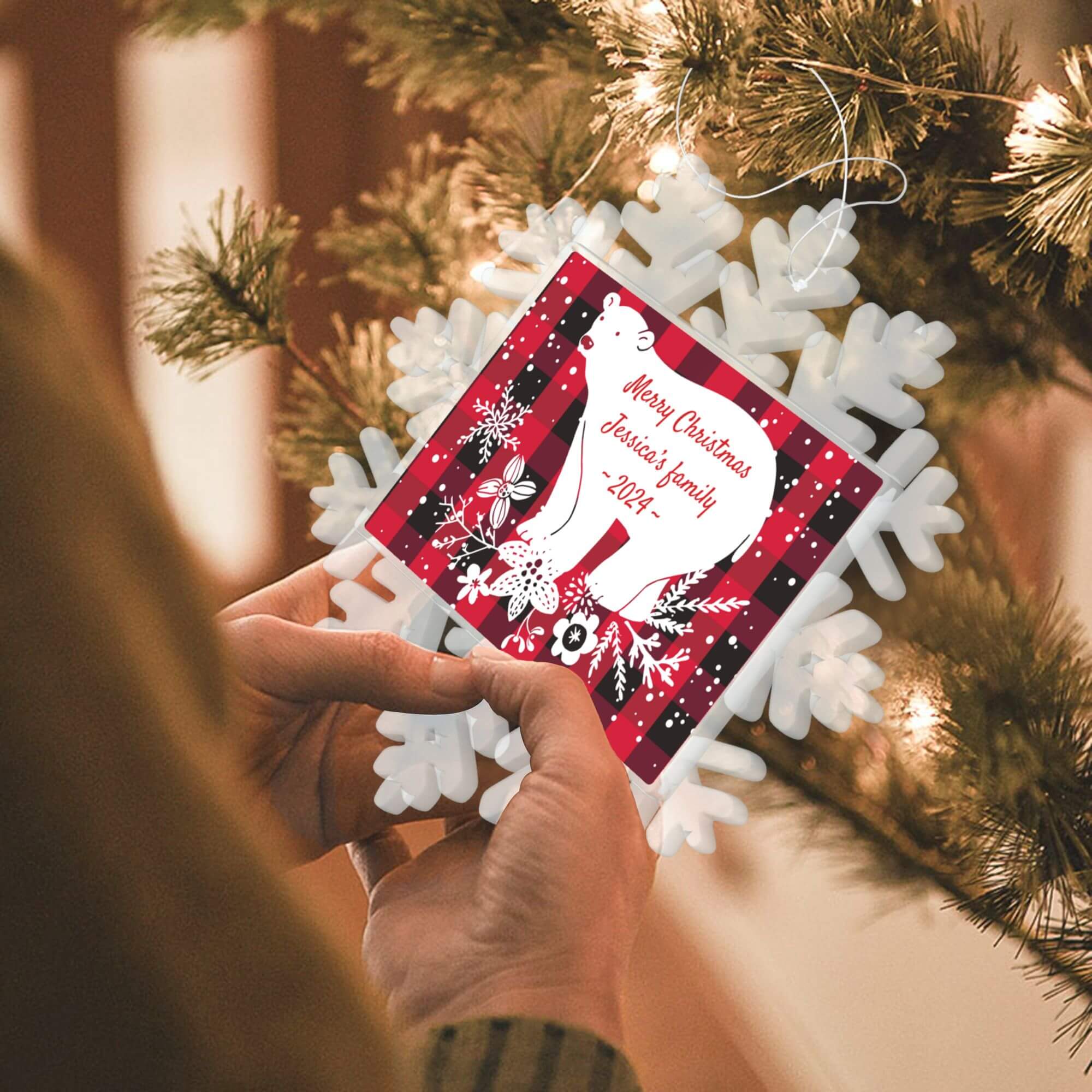 🎄 Personalized first Christmas snowflake ornaments holiday gifts for couples family pets with message. Simple click "Customize now" button. input your message. our professional designers will do everything else for you to achieve the best results.