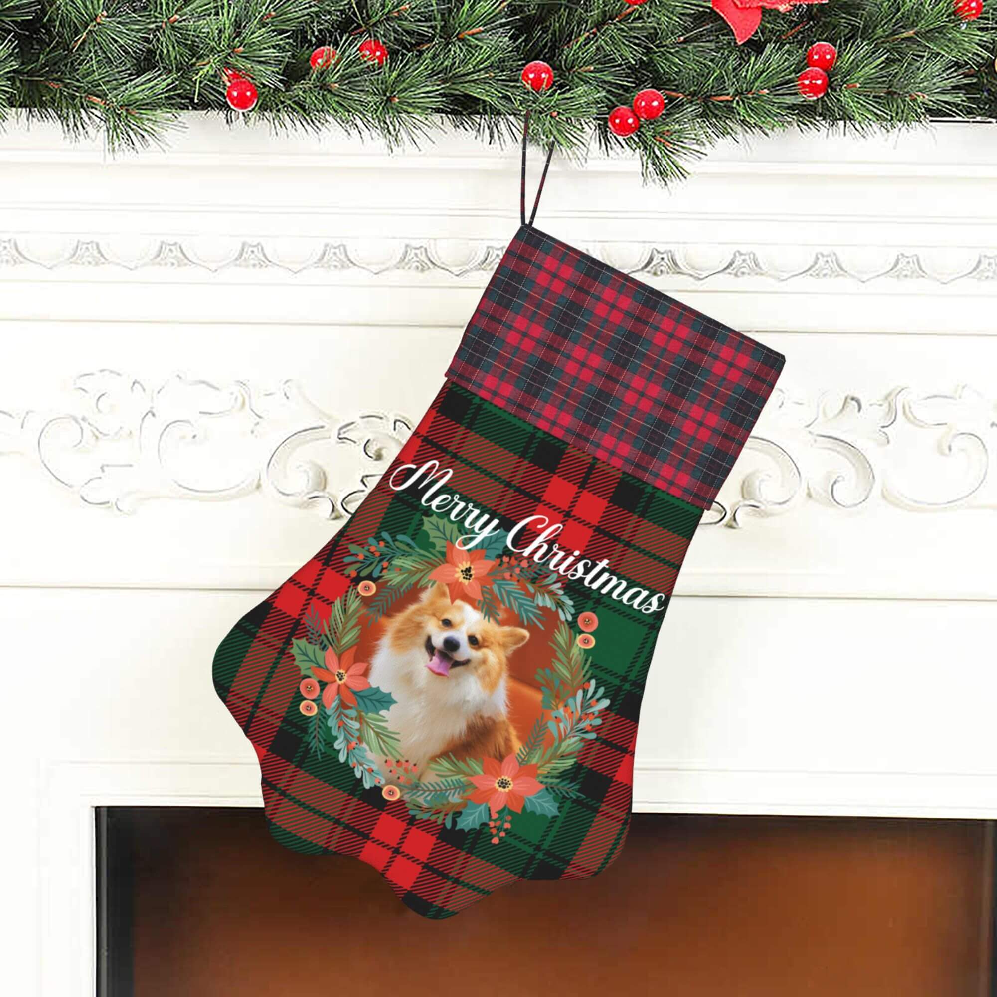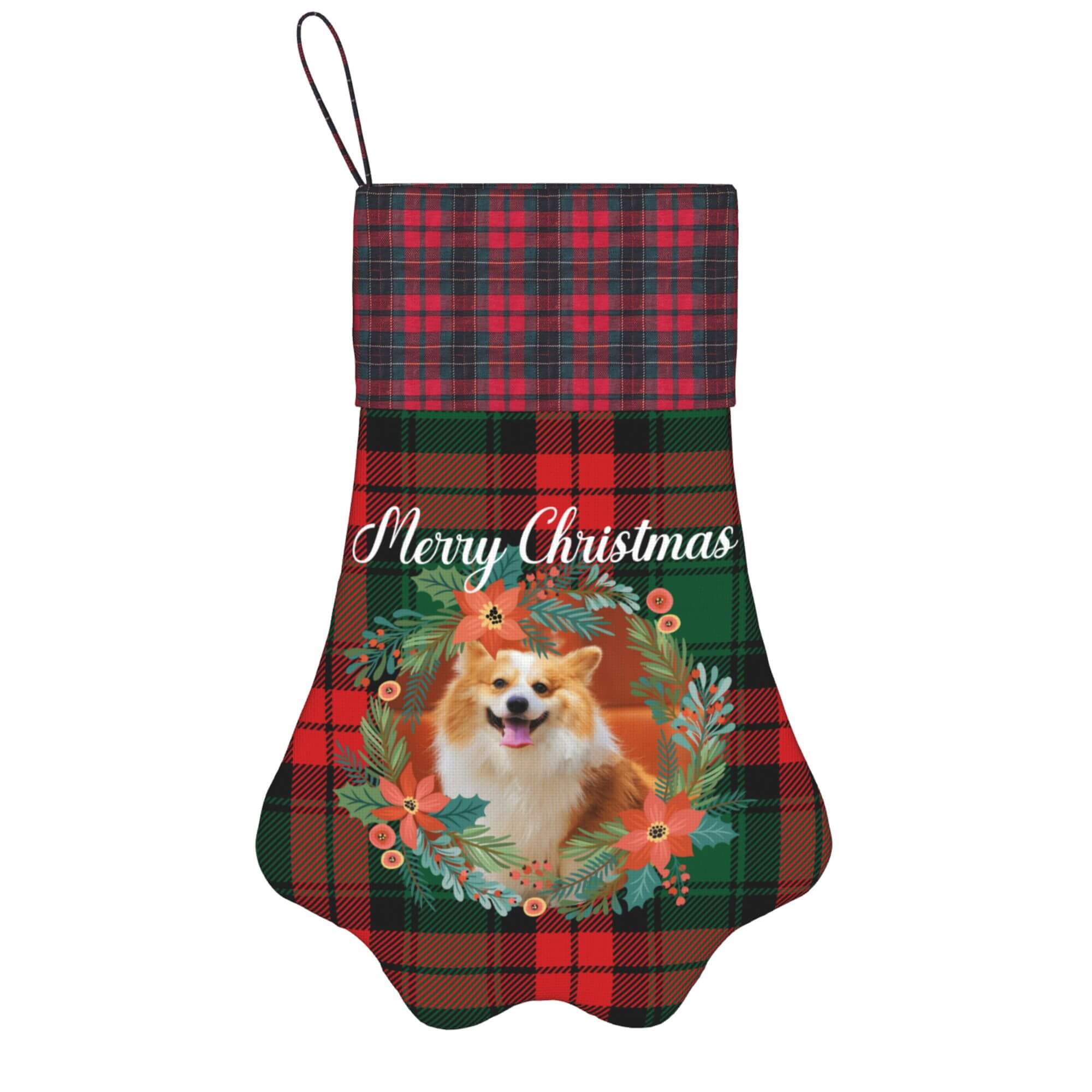 Personalized Christmas Pet Paw Stocking with Photo Name for Dog Cat Pets as Holiday Gifts