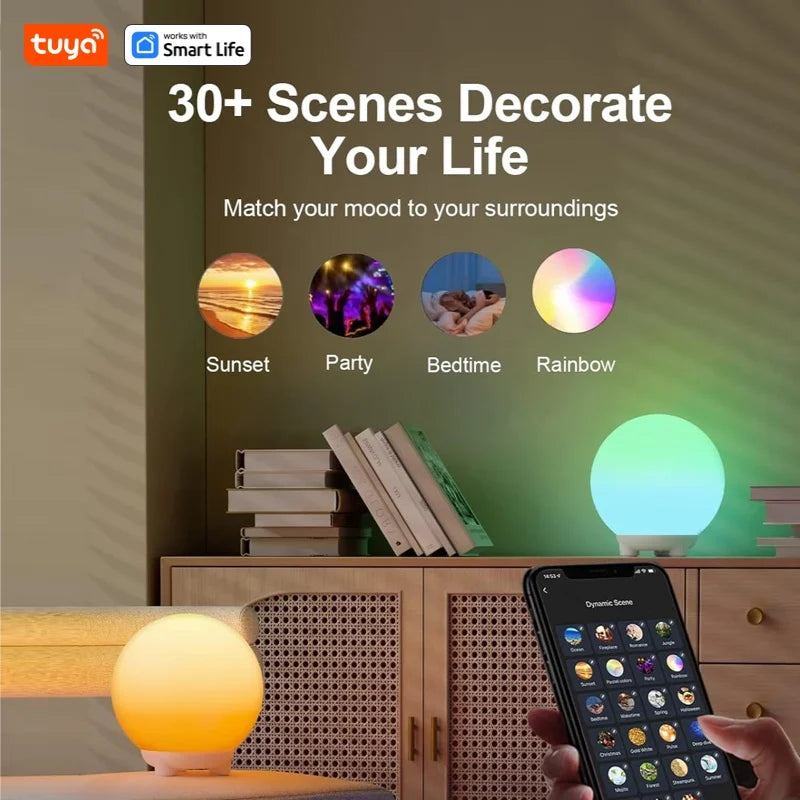 Elevate your space with the LumaGlow Smart Ball Night Light. Featuring a sleek spherical design. RGB gradient lighting. and smart home compatibility. this nightlight is both functional and stylish. Control it with a touch or through the Tuya app to create the perfect atmosphere for any room.