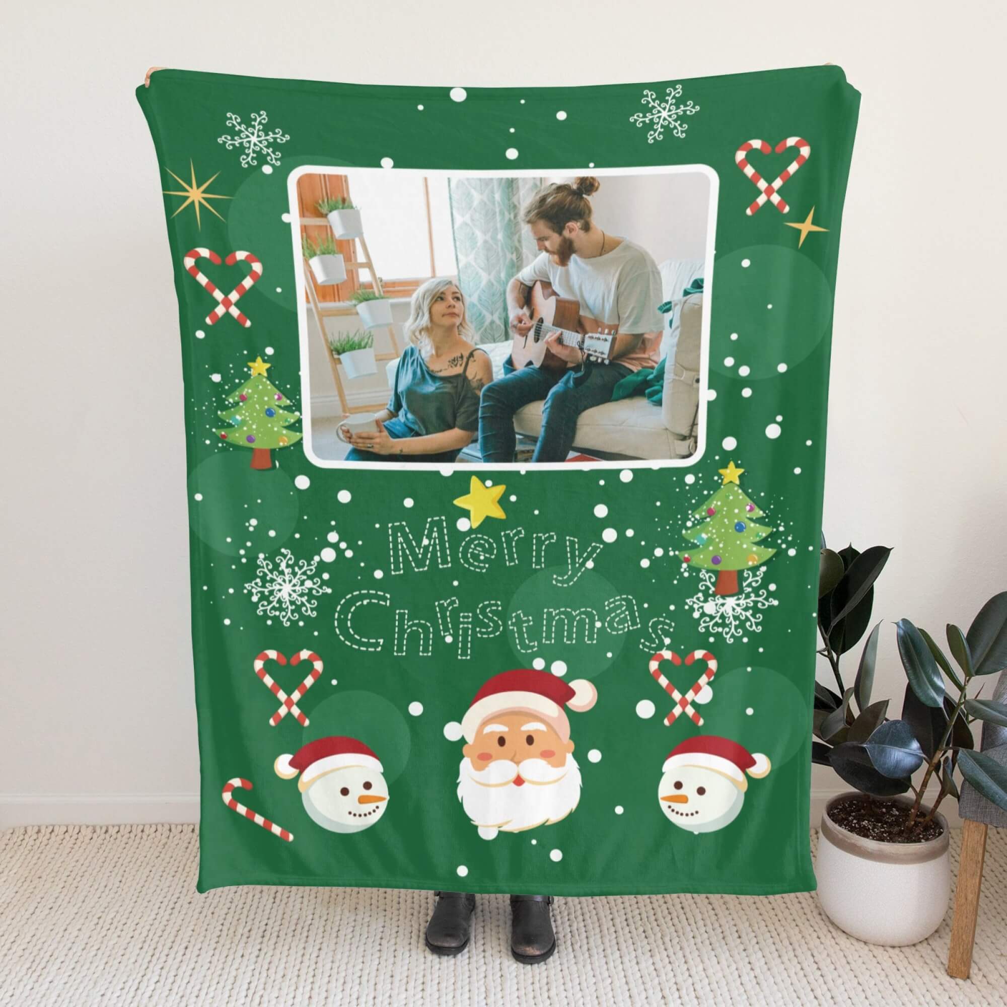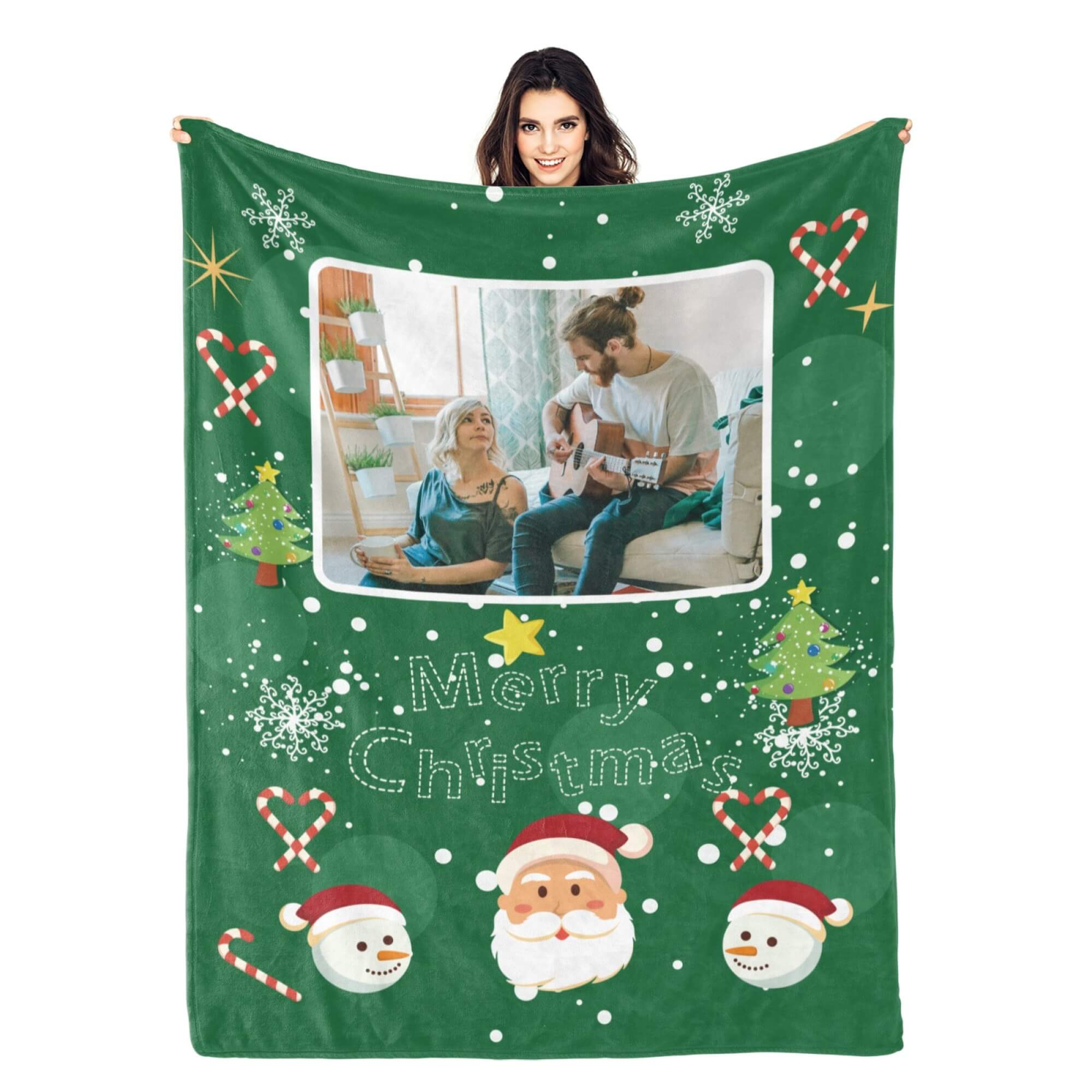 Personalized Christmas Blankets with Photo, Custom Flannel Blanket Gifts for Him Her Couples