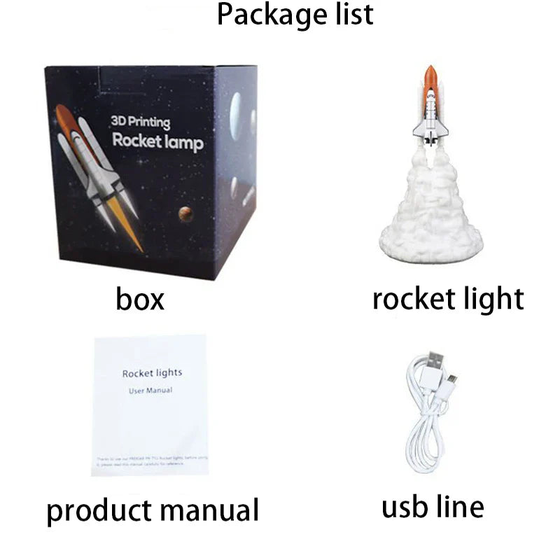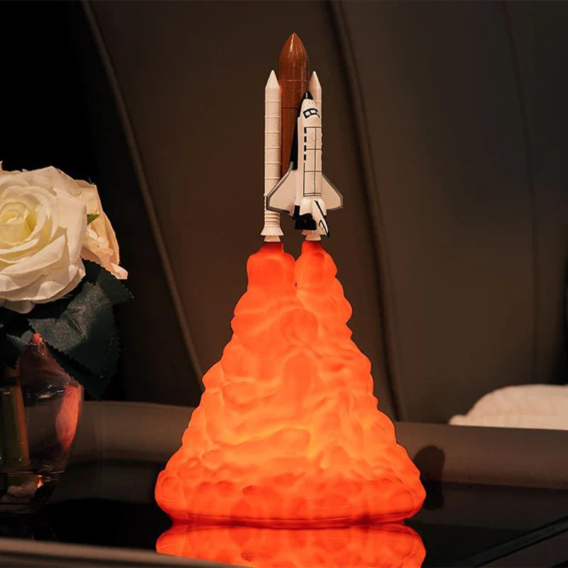 Bring the excitement of space exploration into your home with this rocket-themed night lamp. Designed to capture the awe-inspiring moment of liftoff. this lamp features a detailed rocket model rising from a realistic LED-illuminated launch plume. Whether used as an ambient light. a nightlight. or a decorative piece for a space-themed room. this lamp makes a bold statement.