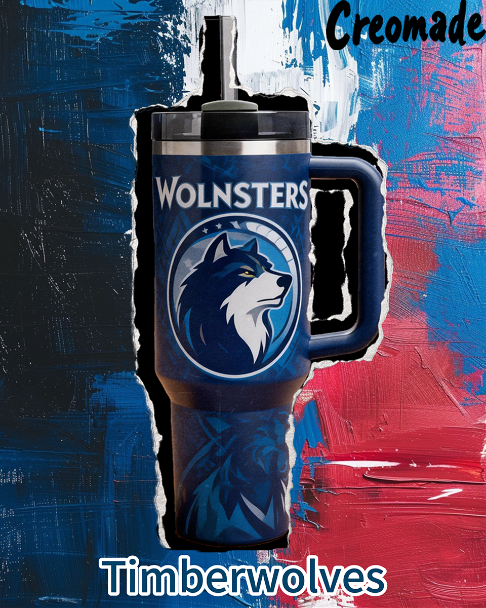 Minnesota Timberwolves Exclusive Design 40oz Insulated Tumbler with Handle & Straw