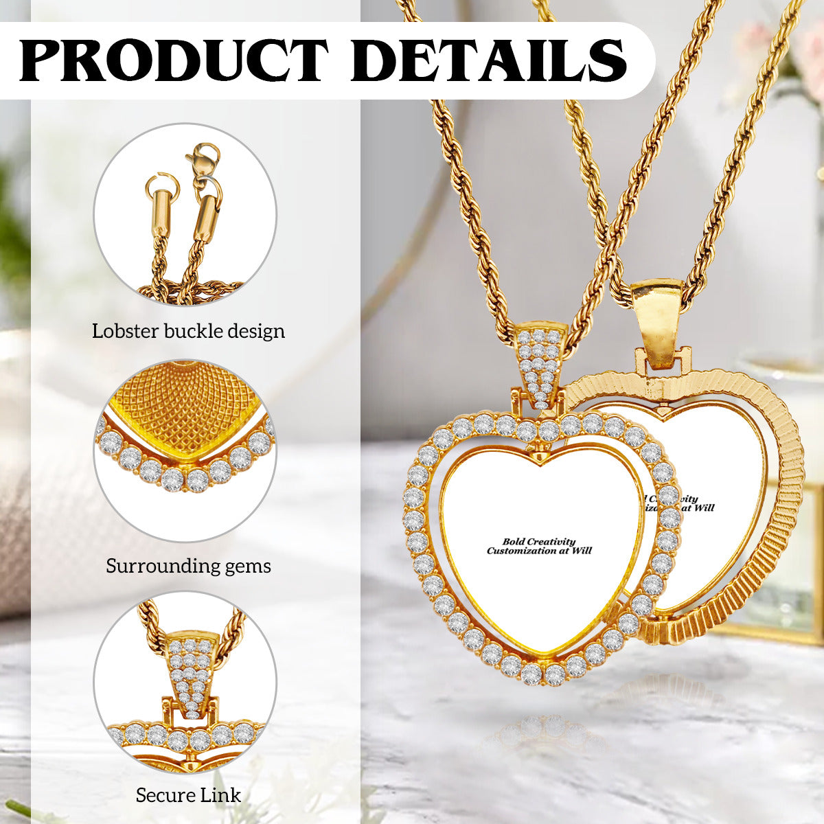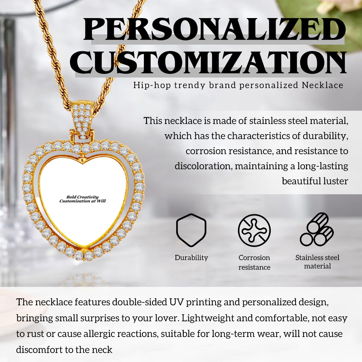 Hip Hop Heart-Shaped Personalized Necklace - Double-Sided