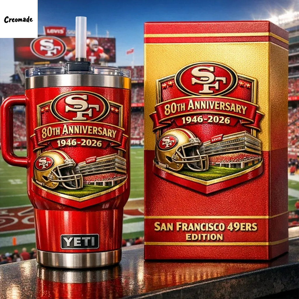 Visually, the tumbler is an immediate statement of allegiance, adorned with a meticulously rendered commemorative design that celebrates the 49ers’ 80th anniversary. This exclusive artwork will likely incorporate a specially designed anniversary emblem, distinct from the standard team logo, possibly featuring a refined blend of historical motifs and contemporary team branding, all executed in the iconic scarlet and gold palette that fans instantly recognize and cherish. The finish itself is often a crucial detail; depending on the model, it might feature a sleek powder coating for enhanced grip and chip resistance, or a polished metallic sheen that catches the light and adds a touch of sophistication. Functionality extends to its ergonomic design, as most premium tumblers are shaped to fit comfortably in a variety of hand sizes and are specifically engineered to slide seamlessly into standard vehicle cup holders, making it an ideal companion for road trips or daily errands. A secure, spill-resistant lid, often featuring a sliding closure or a straw-compatible opening, further enhances its practicality, minimizing accidental spills and allowing for convenient hydration on the go, whether you’re cheering from the stands, working at your desk, or enjoying an outdoor adventure. For potential customers, this tumbler meets several key needs: it serves as a proud and prominent display of unwavering team loyalty, functioning as both a practical hydration tool and a cherished piece of memorabilia. It appeals to collectors who understand the value of limited-edition, commemorative items that will only grow in significance as the anniversary approaches and passes. Moreover, it is an ideal gift for any 49ers enthusiast, offering a blend of utility and sentimentality that few other products can match. The San Francisco 49ers 80th Anniversary 2026 Tumbler is not merely a container; it’s an enduring emblem of fandom, a testament to eight decades of sporting history, and a reliable partner for your everyday hydration needs, all wrapped in a collector’s item poised to be treasured for years to come.