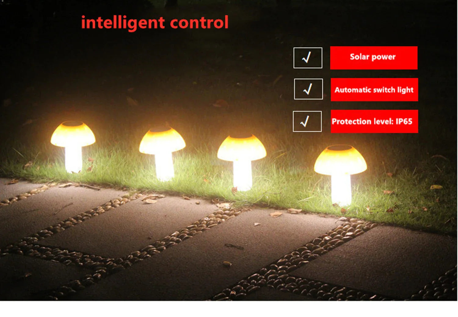 Solar-Powered & Energy-EfficientNo wiring required! These mushroom lights automatically charge during the day and turn on at dusk for effortless. energy-saving operation.