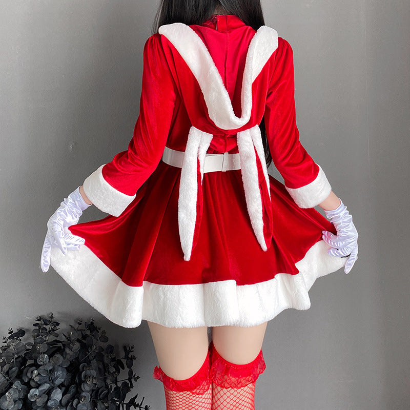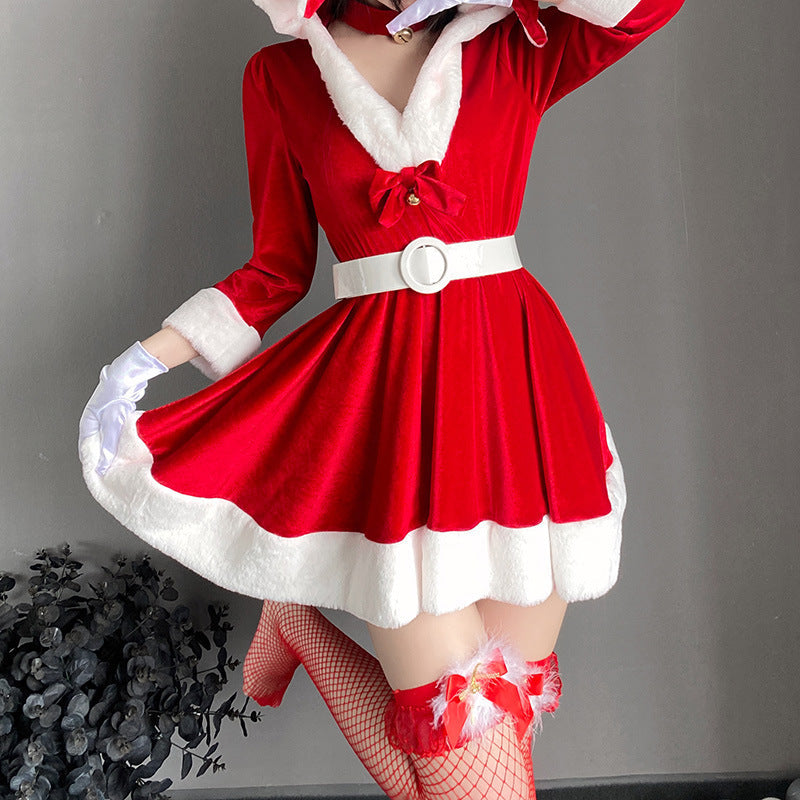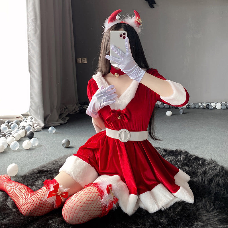 Color: red (Dress+Headwear+Collar+Gloves+Belt)