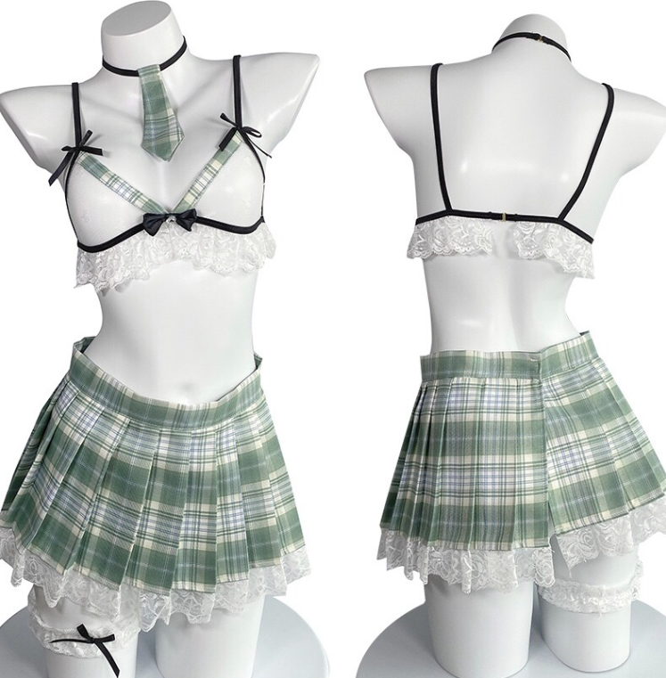 Suit: top + skirt + panties + stockings + neck ring + bracelet