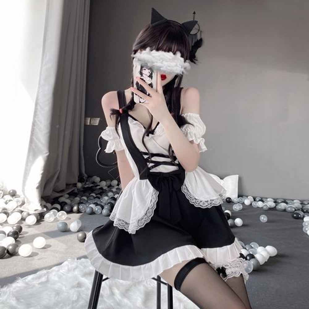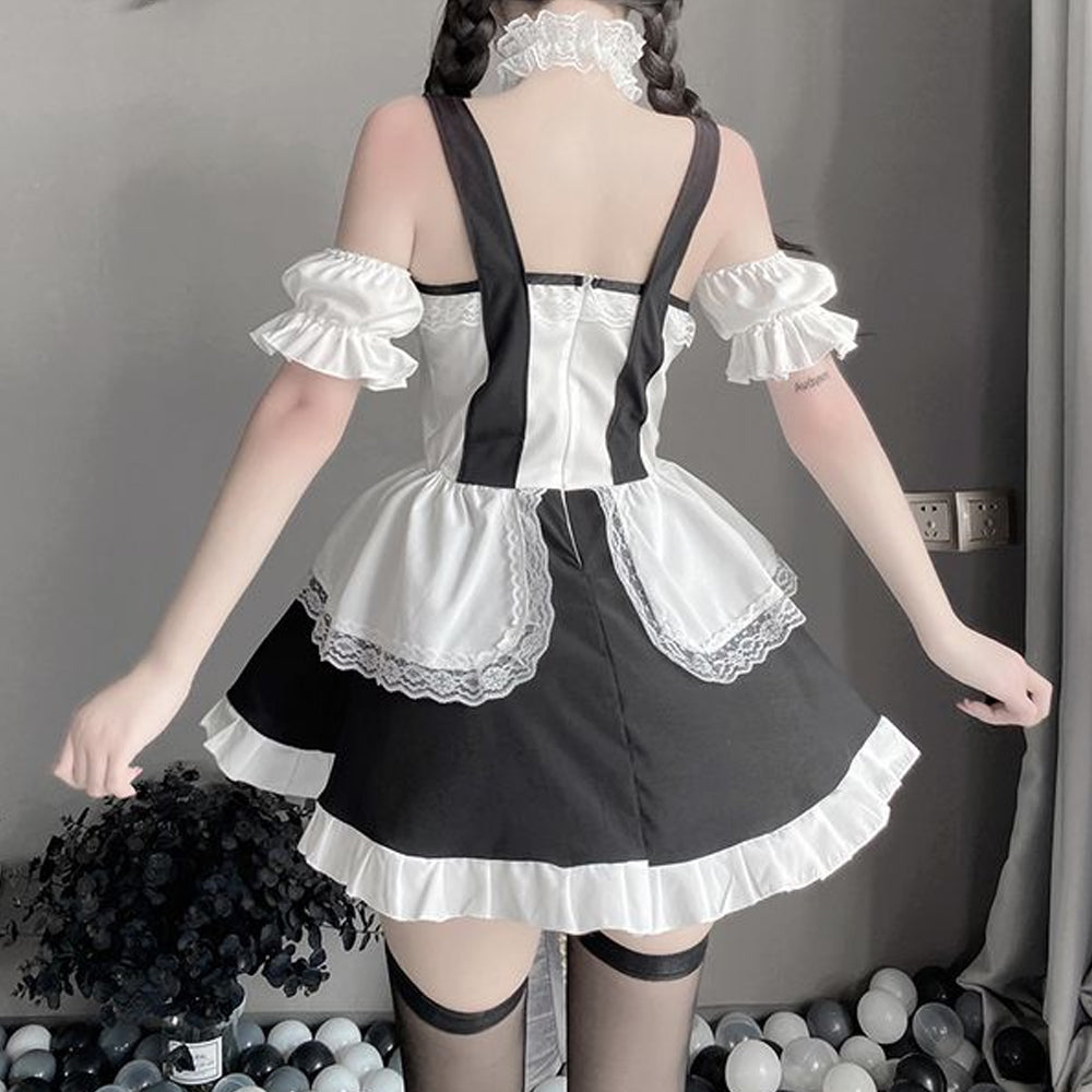 Naughty French Maid Costume Anime Lolita Cosplay Dress with Lace Choker