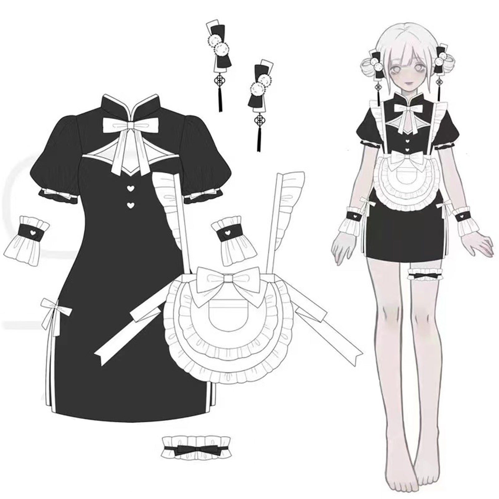 Package Including: 1* cheongsam dress+1* apron+2*cuff+1* leg ring
