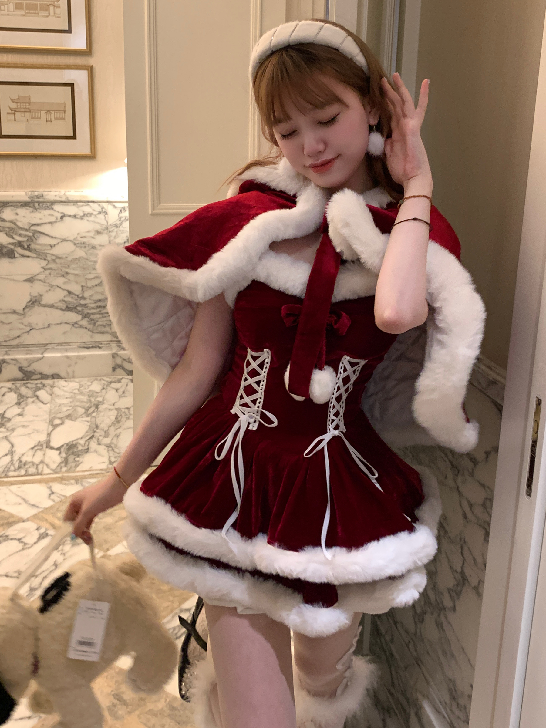 Energetic Christmas Sweet Cape Dress SD63