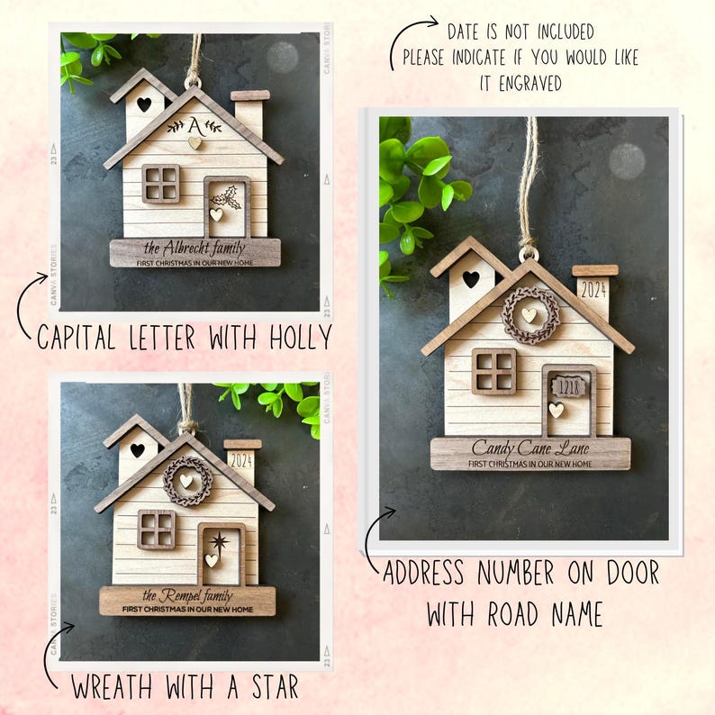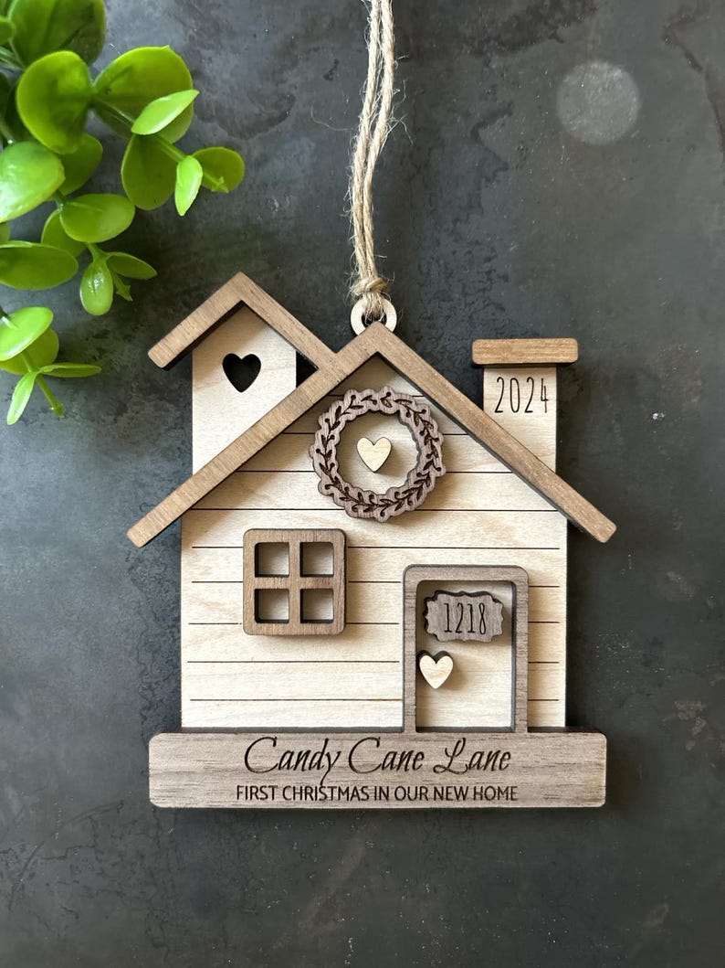 Christmas 2024 2025 Ornament First Home Ornament House Ornament Wooden Family Ornament Housewarming Gift Personalized Engraved New Home Gift