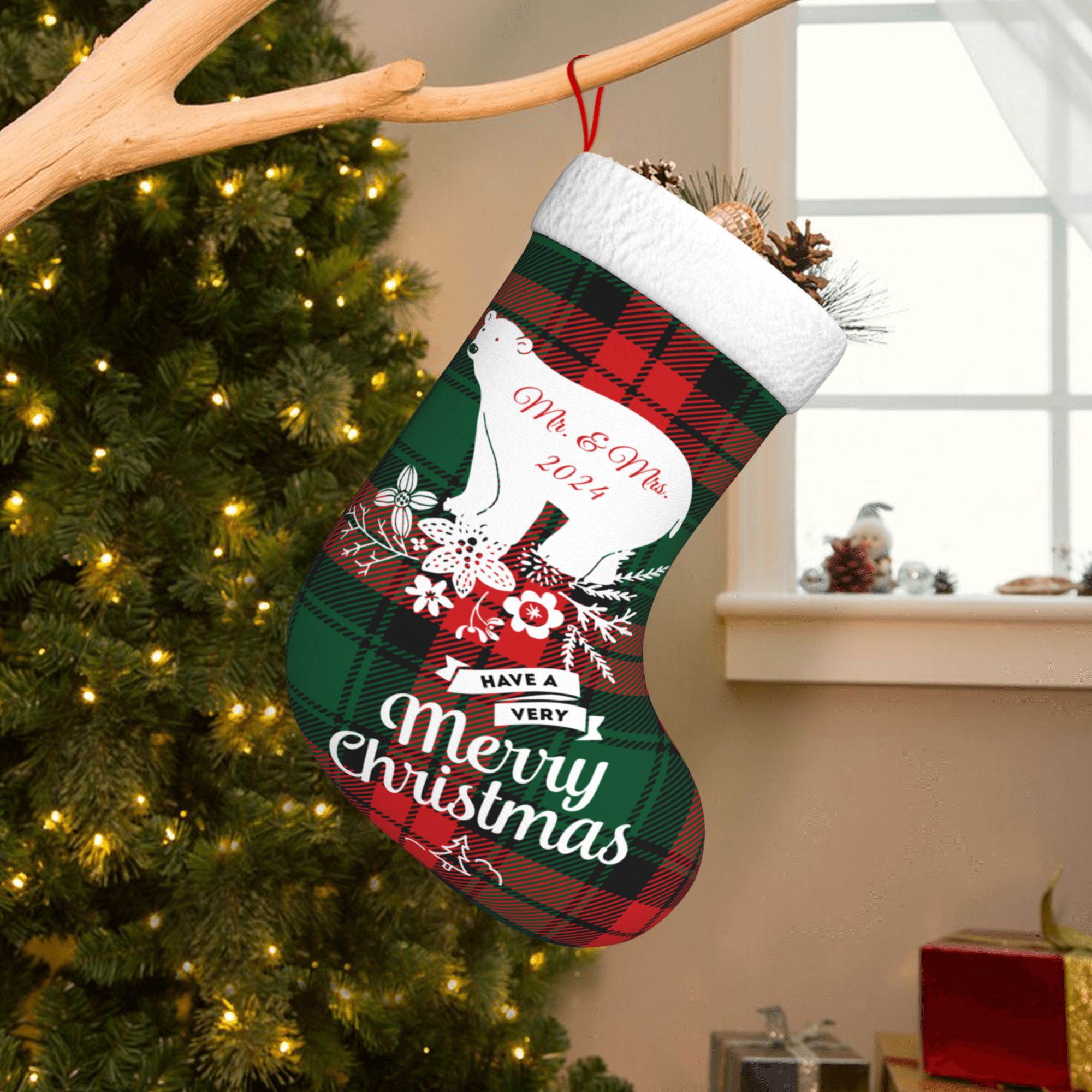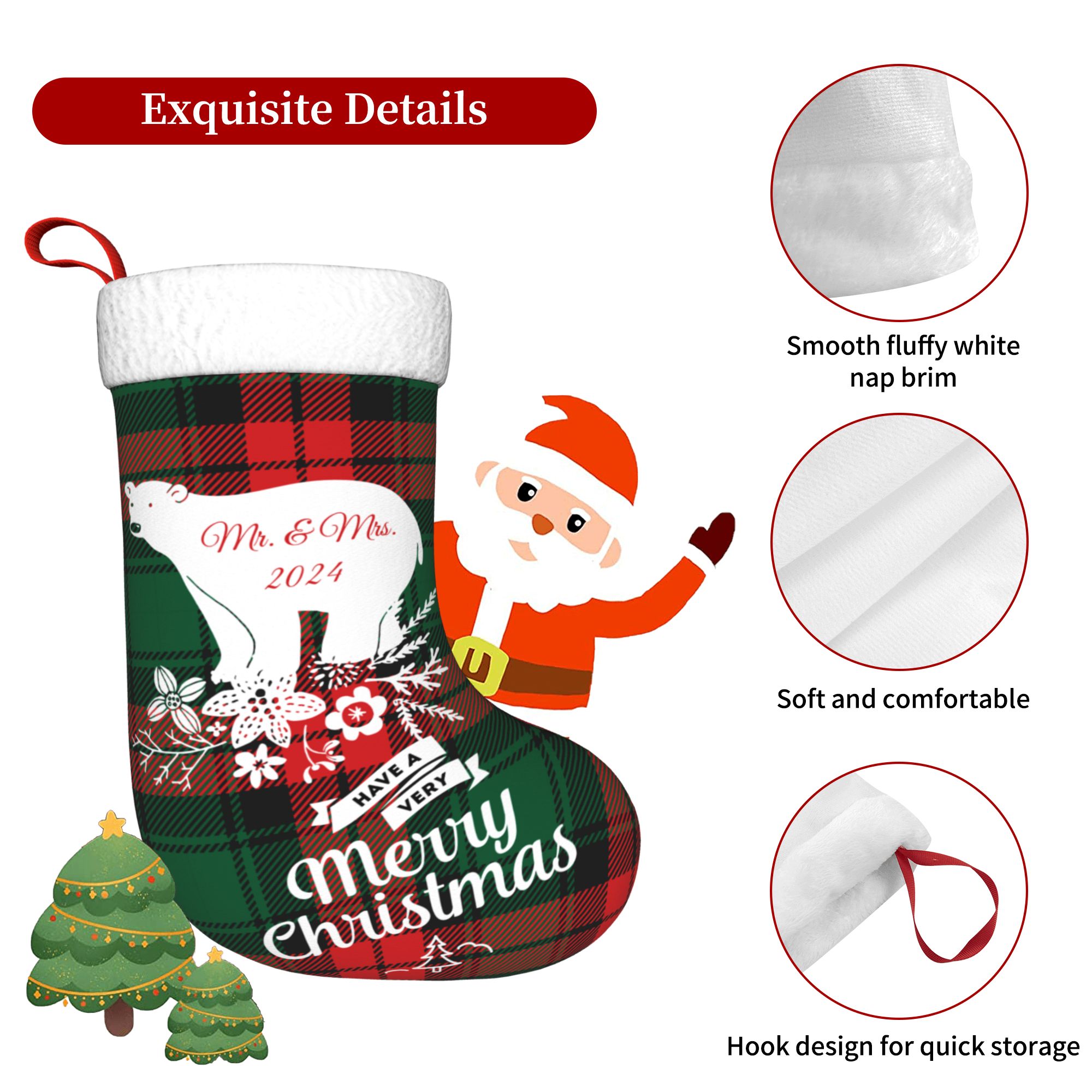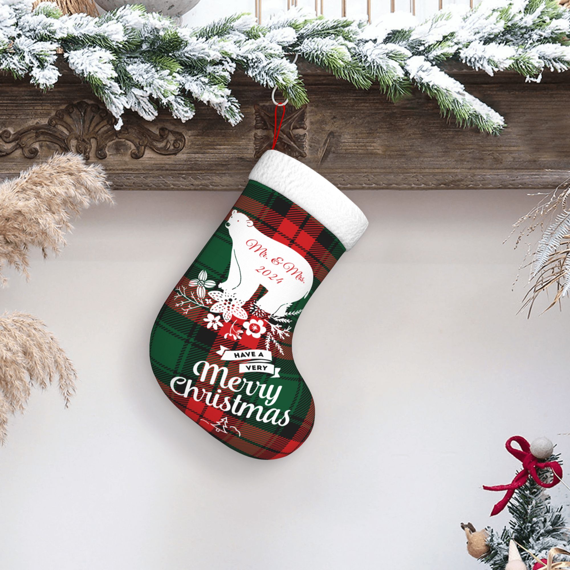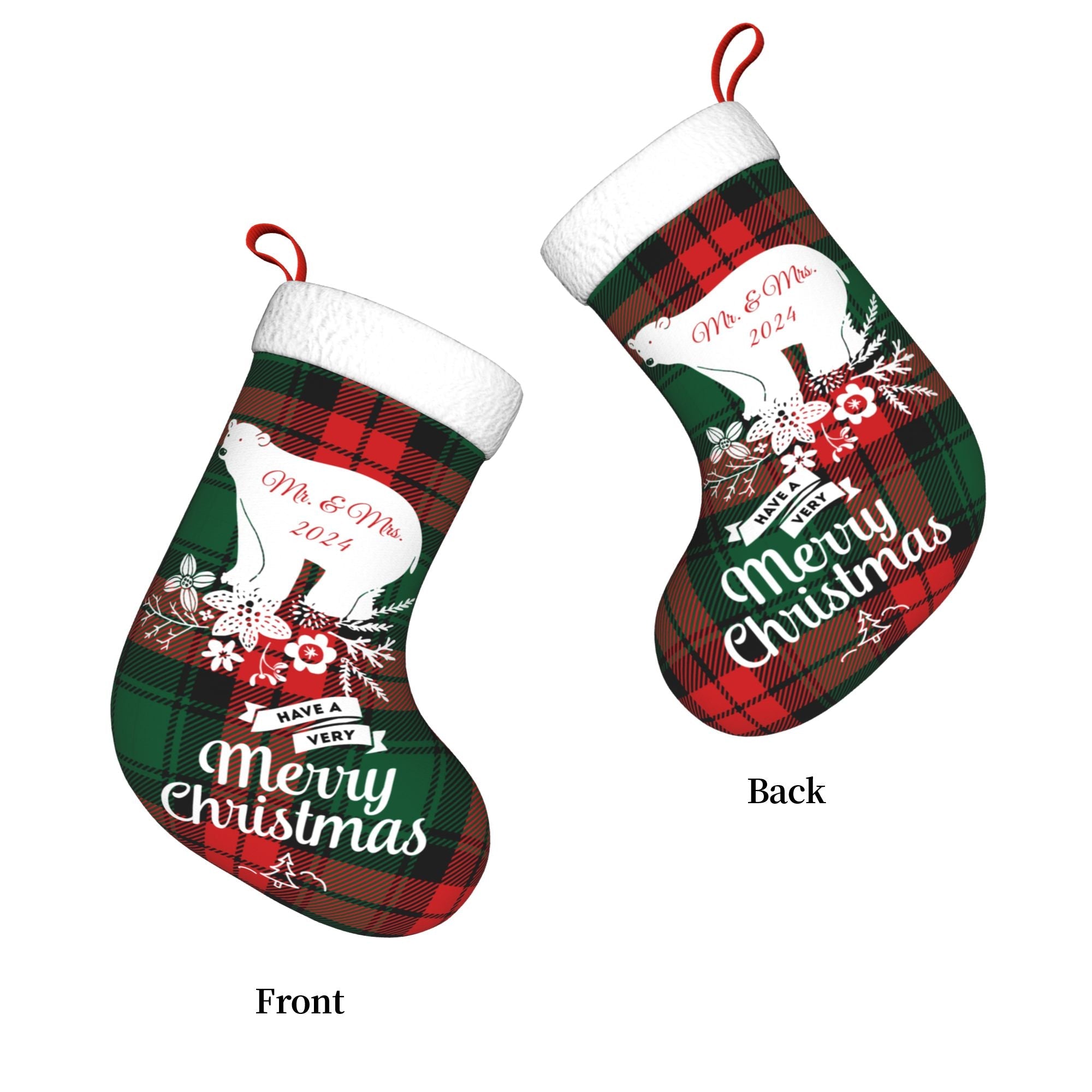 Custom Christmas Bear Stockings with Name for Family Kids Her as Holiday Gifts Decorations