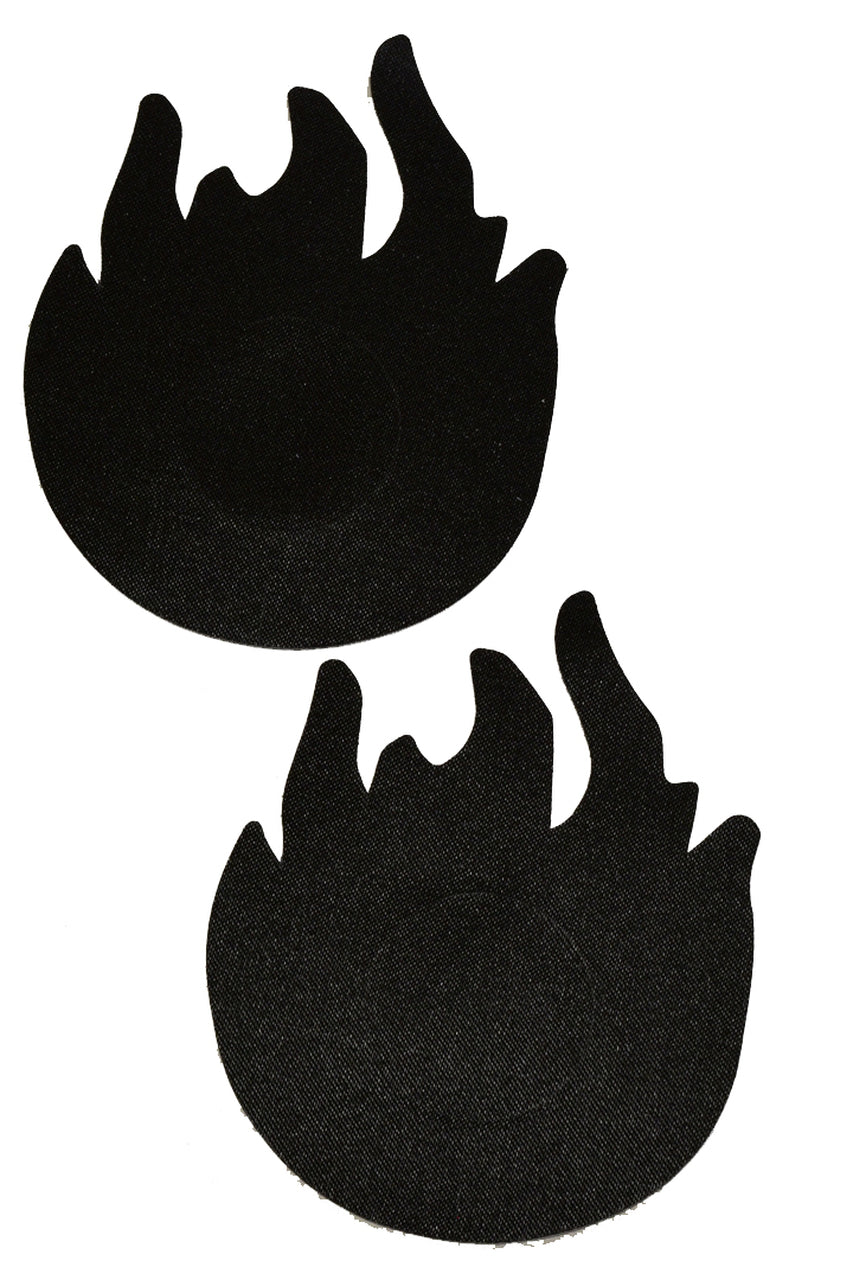 Black Flame nipple pasties. Features self adhesive tape. just peel and stick on clean. dry. oil-free skin!
